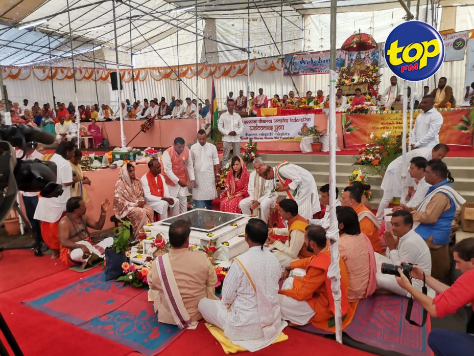 For two years, the whole world faced with the most dangerous Pandemic such as Corona Virus Covid-19. In Mauritius, due to the Pandemic and confinement, our whole activities and Poojas in our Mandirs were greatly disturbed. Most of our Poojas and Kathas could not be performed. However, our Hindu devotees did their prayers at home and also our Acharyas / Purohits did the prayers where people can view live on Facebook. MSDTF and the Head Priest broadcasted their information through MBC TV, Radio, Facebook, Wattsapp and other social media.